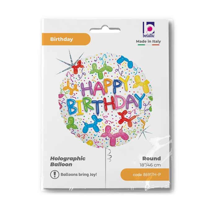 Happy Birthday fólia lufi Holographic.Méret: 46 cm (18 inch)Anyaga: fólia Héliummal és levegővel is tölthető. Bővebben