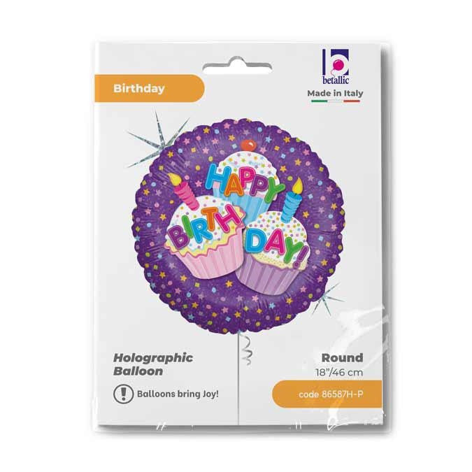Happy Birthday Cupcake Holo fólia lufi 46 cm