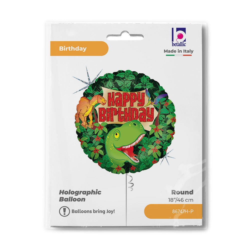 Happy Birthday Dinosaur Holo fólia lufi 46 cm