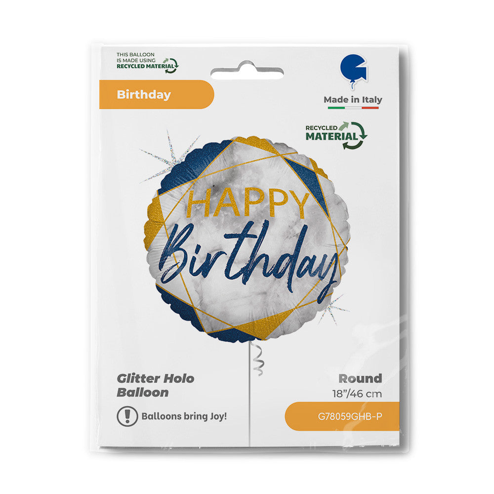 Happy Birthday Glitter Marble Blue fólia lufi 46 cm