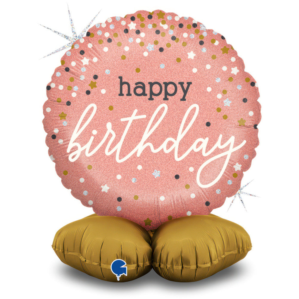 Happy Birthday Rose Gold fólia lufi talppal 41 cm