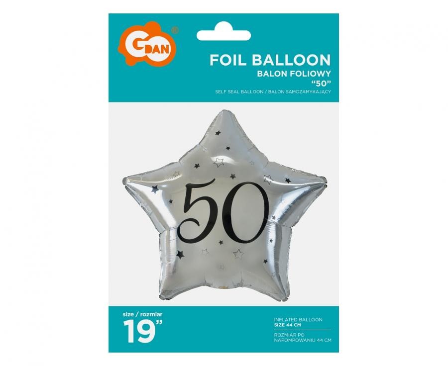 Happy Birthday Silver, Ezüst csillag 50 fólia lufi 44 cm