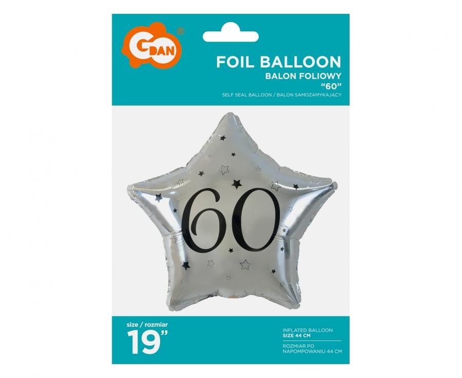 Happy Birthday Silver, Ezüst csillag 60 fólia lufi 44 cm