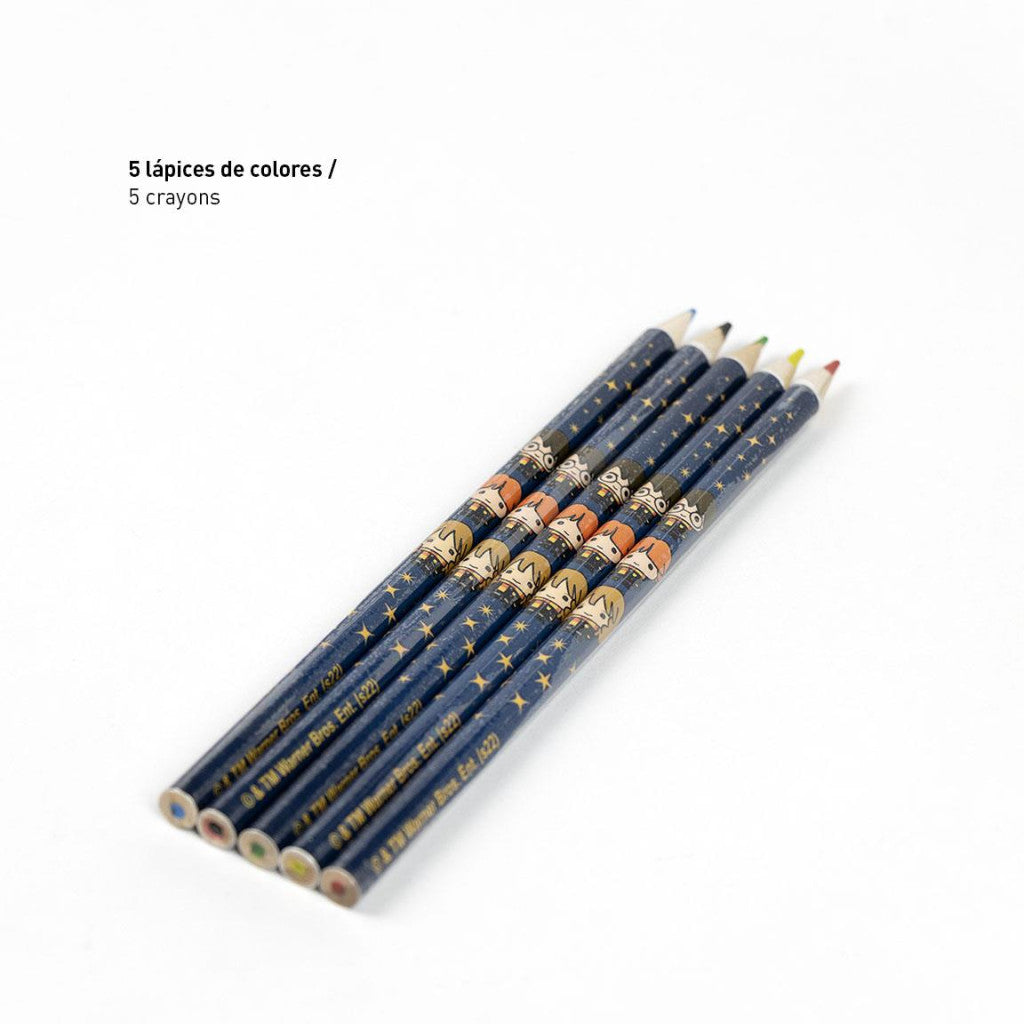 Harry Potter írószer szettMéret: 22x32 cmTartalma:-1 db A4 színező (9 oldalas)-1 db A5 színező notesz-5 db színes ceruza-1matricák Bővebben
