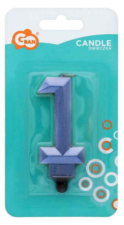 Kék 1-es Diamond Metallic számgyertya, tortagyertya