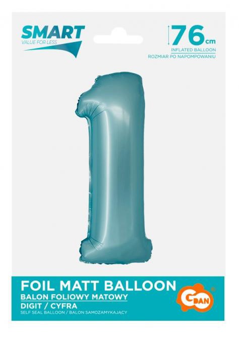 Kék 1-es Light Blue Mat szám fólia lufi 76 cm