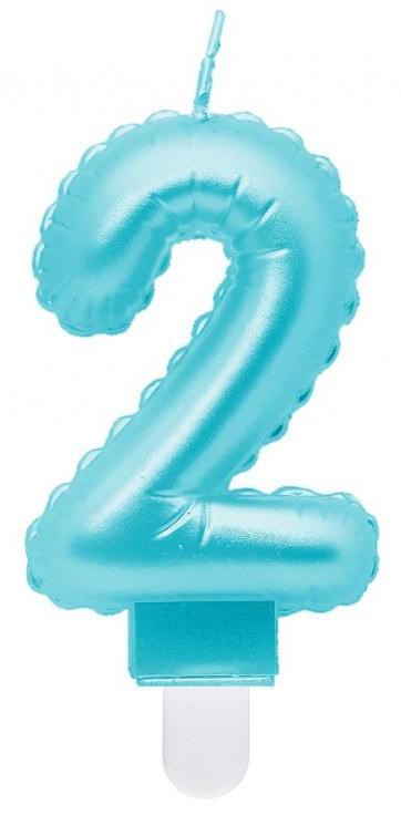 Kék 2-es Pearly Light számgyertya, tortagyertya