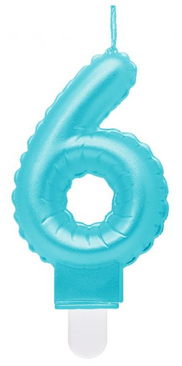 Kék 6-os Pearly Light számgyertya, tortagyertya