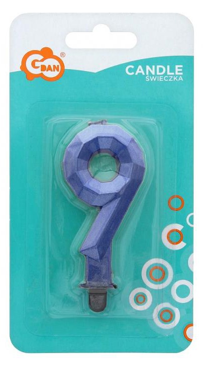 Kék 9-es Diamond Metallic számgyertya, tortagyertya