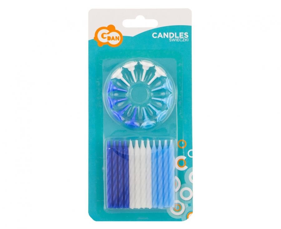 Kék tortagyertya, gyertya szett24 db gyertya és 12 db gyertyatartó!Méret: 6 cm Bővebben