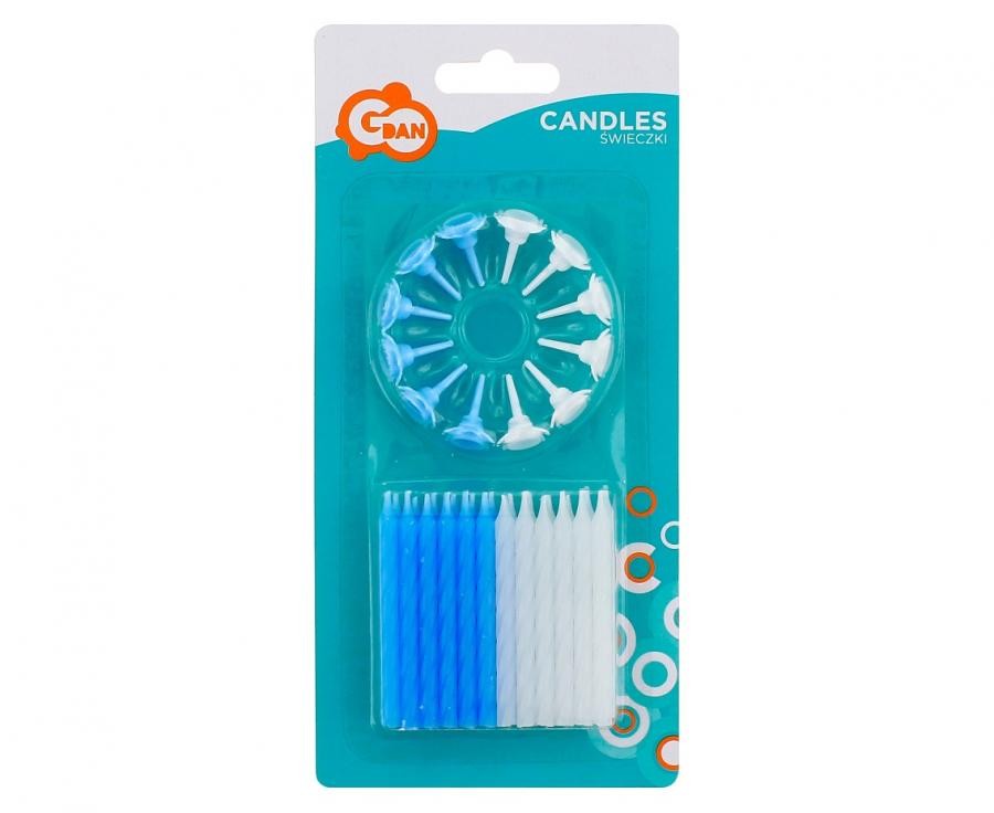 Kék tortagyertya, gyertya szett24 db gyertya és 12 db gyertyatartó!Méret: 6 cm Bővebben