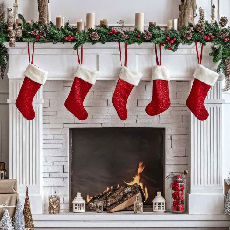 Karácsonyi Santa kandalló zokni, csizma flitterekkel 44 cm