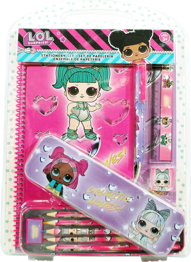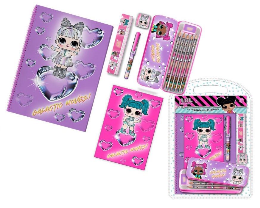 LOL Surprise Galactic írószer szettTartalma:- notesz- radír- vonalzó- 1 db toll- fém tolltartó- 5 db színesceruza Bővebben