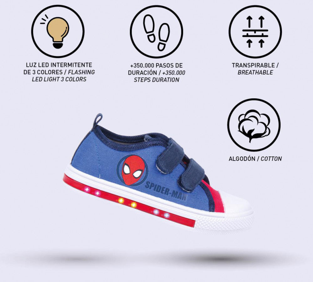 Spiderman, Pókember LED villogó, világító Utcai cipő Tépőzáras!Anyaga: pamut + PVC talpMéret:29 Bővebben