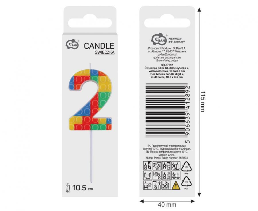 Építőkocka 2-es Pick Blocks tortagyertya, számgyertya