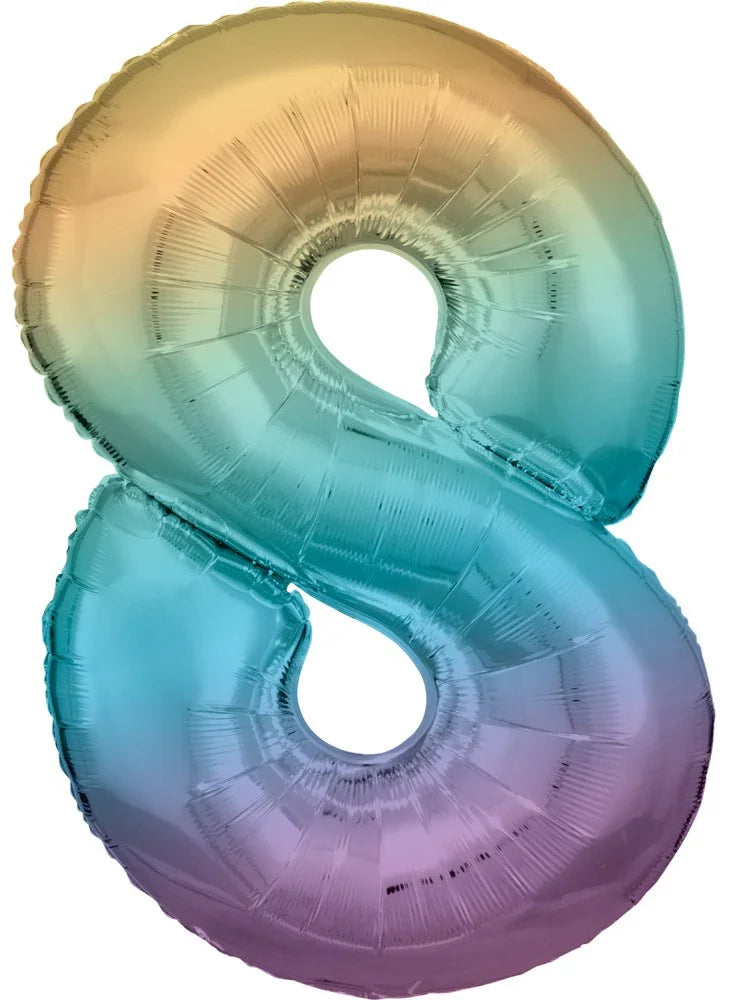Pastel Rainbow óriás szám fólia lufi 8-as, 83 cm