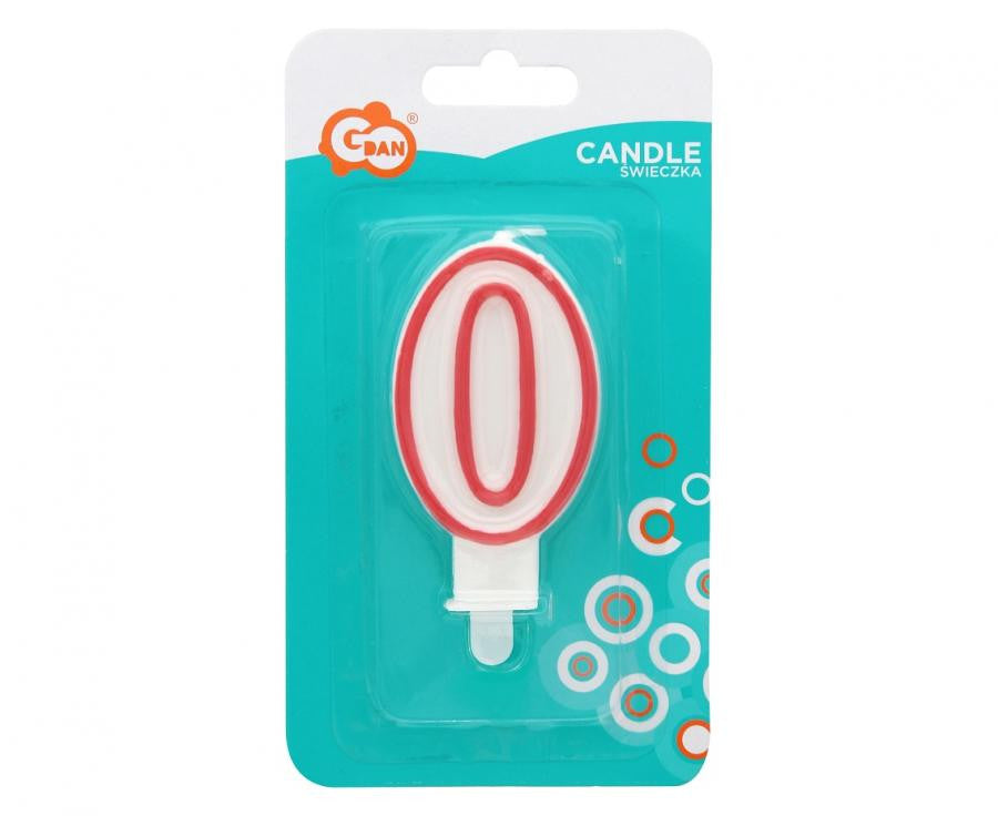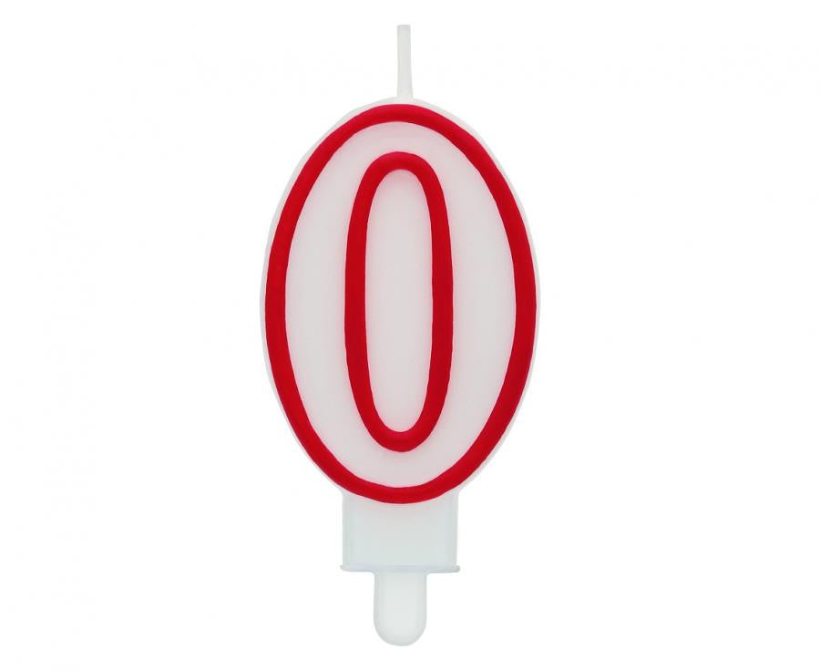 Piros Körvonalas Red Outline számgyertya, tortagyertya 0-ás