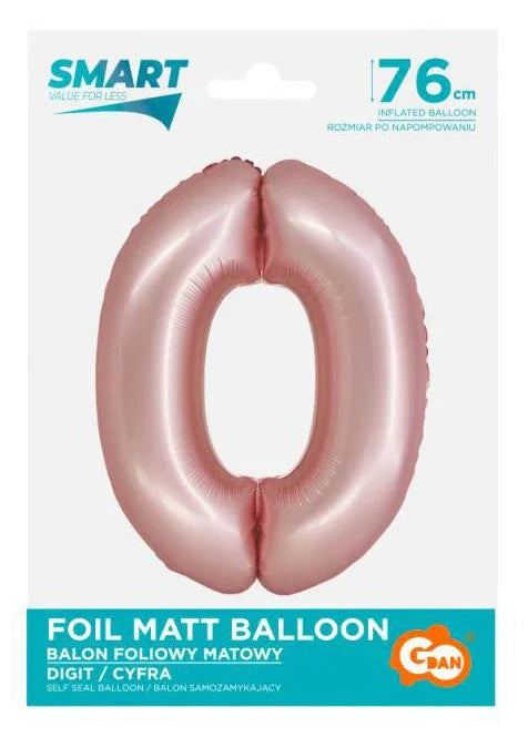 Rózsaszín 0-ás Light Pink Mat szám fólia lufi 76 cm
