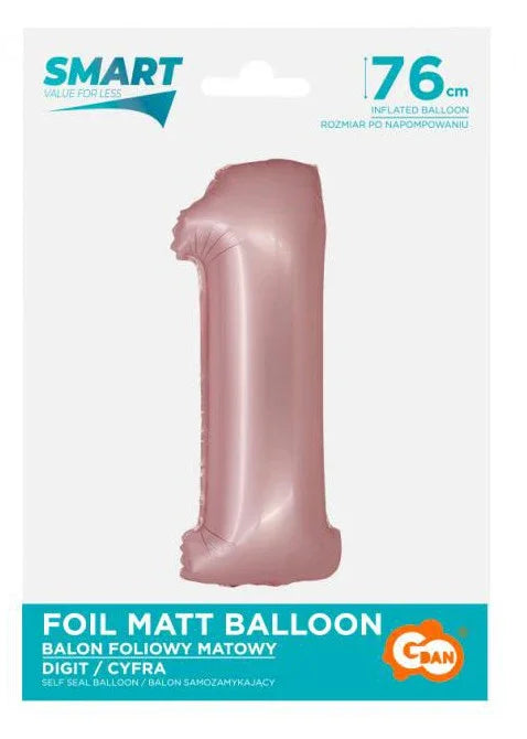 Rózsaszín 1-es Light Pink Mat szám fólia lufi 76 cm