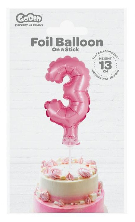 Rózsaszín 3-as Pink szám fólia lufi tortára 13 cm