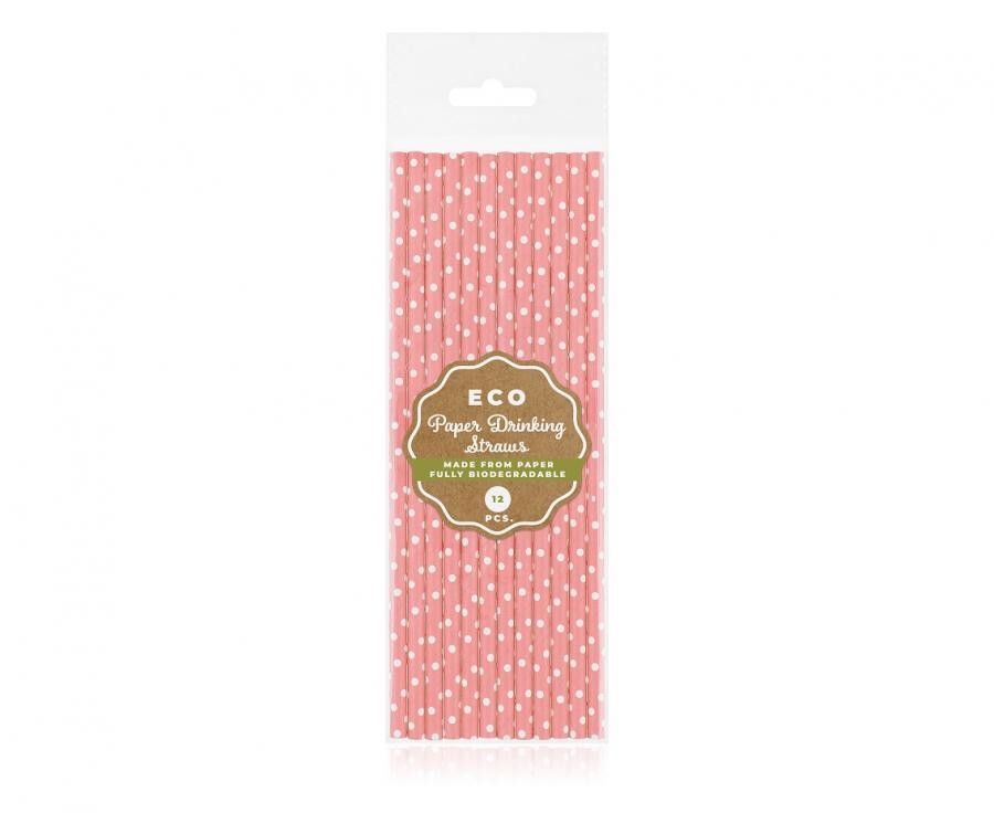 Rózsaszín Light Pink Dots papír szívószál 12 db-os