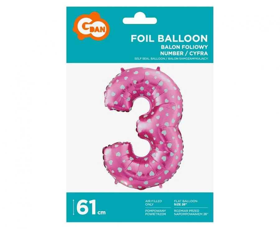 Pink with Hearts, Rózsaszín 3-as szám fólia lufi 61 cmFólia léggömb, mely héliummal vagy levegővel tölthető. A lufi önzárószeleppel van... Bővebben