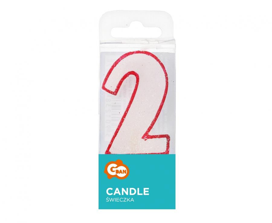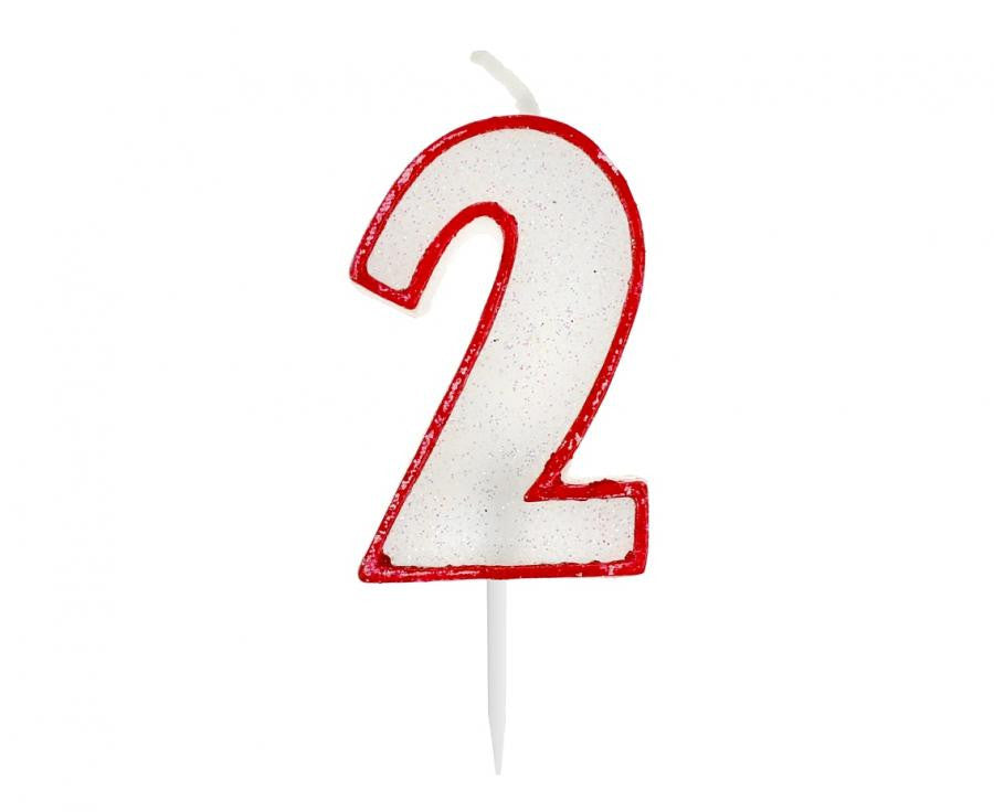 Red Outline Glitter, Piros 2-es számgyertya, tortagyertya