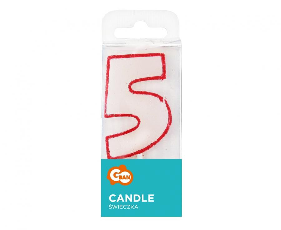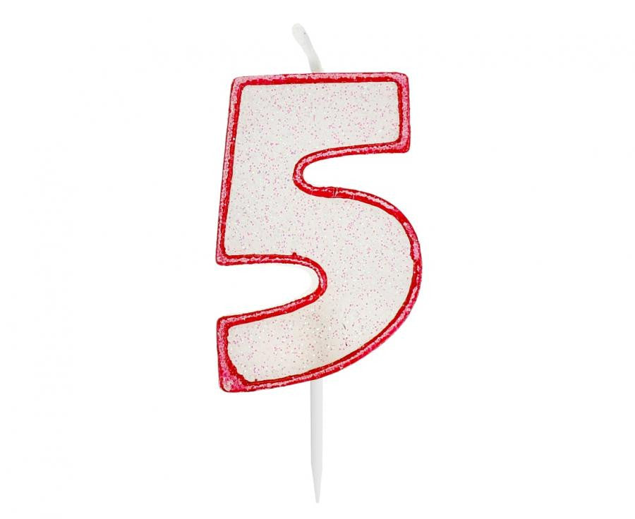 Red Outline Glitter, Piros 5-ös számgyertya, tortagyertya