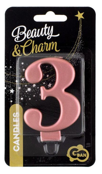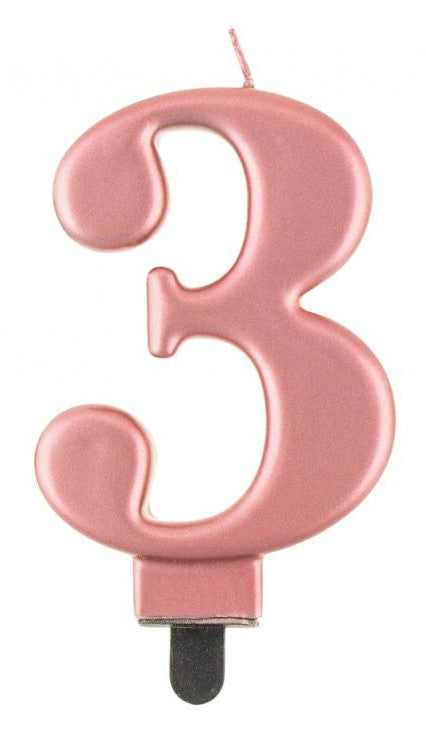 Rose Gold 3-as Metallic számgyertya, tortagyertya