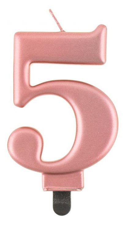 Rose Gold 5-ös Metallic számgyertya, tortagyertya