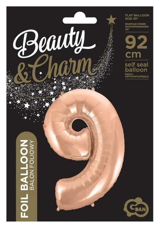 Rose Gold 9-es szám fólia lufi 92 cm