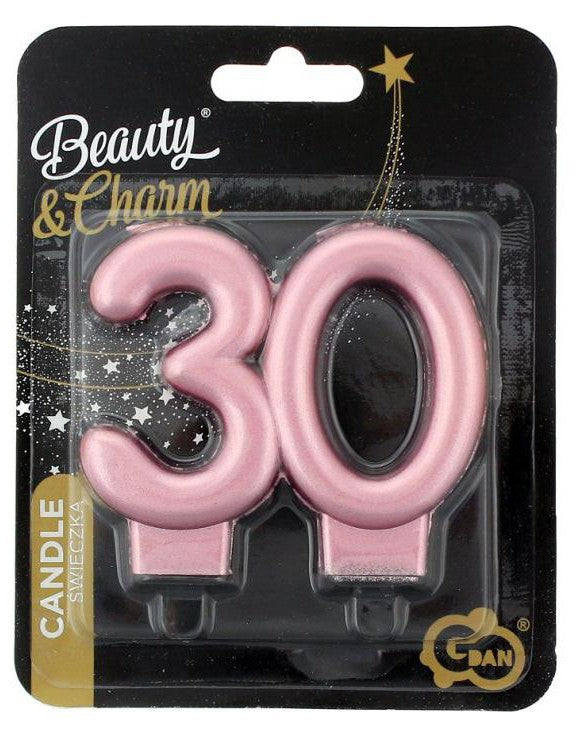 Rose Gold Metallic tortagyertya, számgyertya 30-as