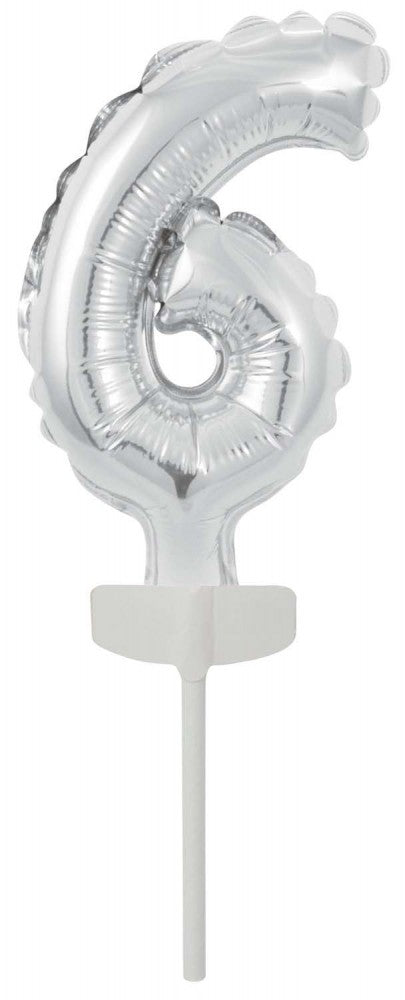 Silver, Ezüst 6-os szám fólia lufi tortára 13 cm