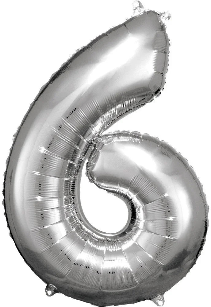 Silver óriás szám fólia lufi 6-os, 86*58 cm