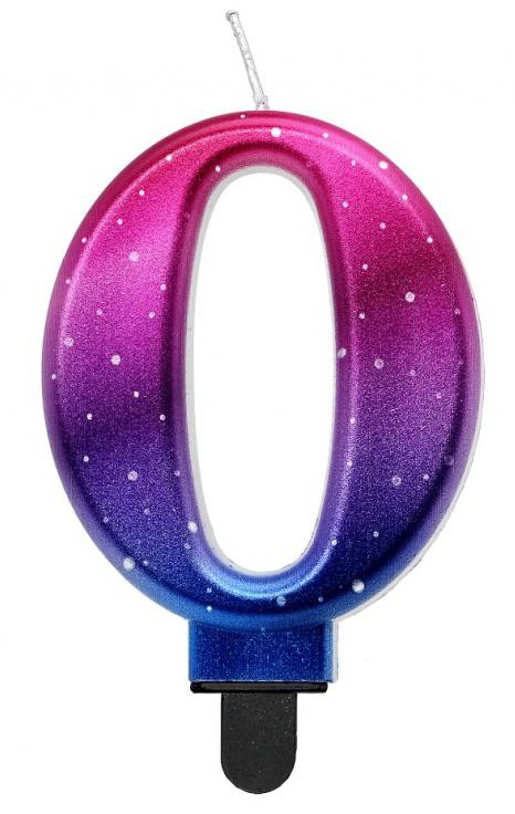 Színes 0-ás Night Sky Metallic számgyertya, tortagyertya