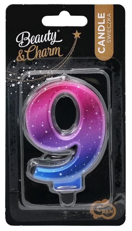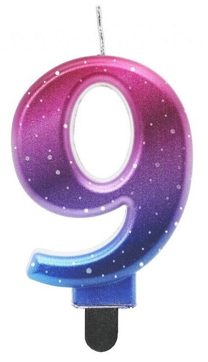 Színes 9-es Night Sky Metallic számgyertya, tortagyertya