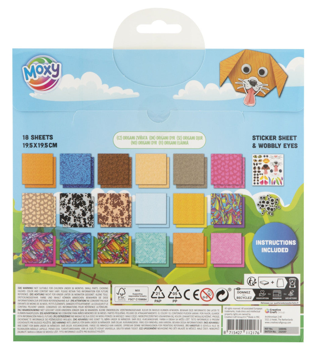 Színes origami állatok kiegészítőkkelMéret: 19,5x19,5 cmAnyaga: papírTartalma:- 18 lap- matricák- szemek- leírás a csomagban3 éves kor alatt nem ajánlott! Bővebben