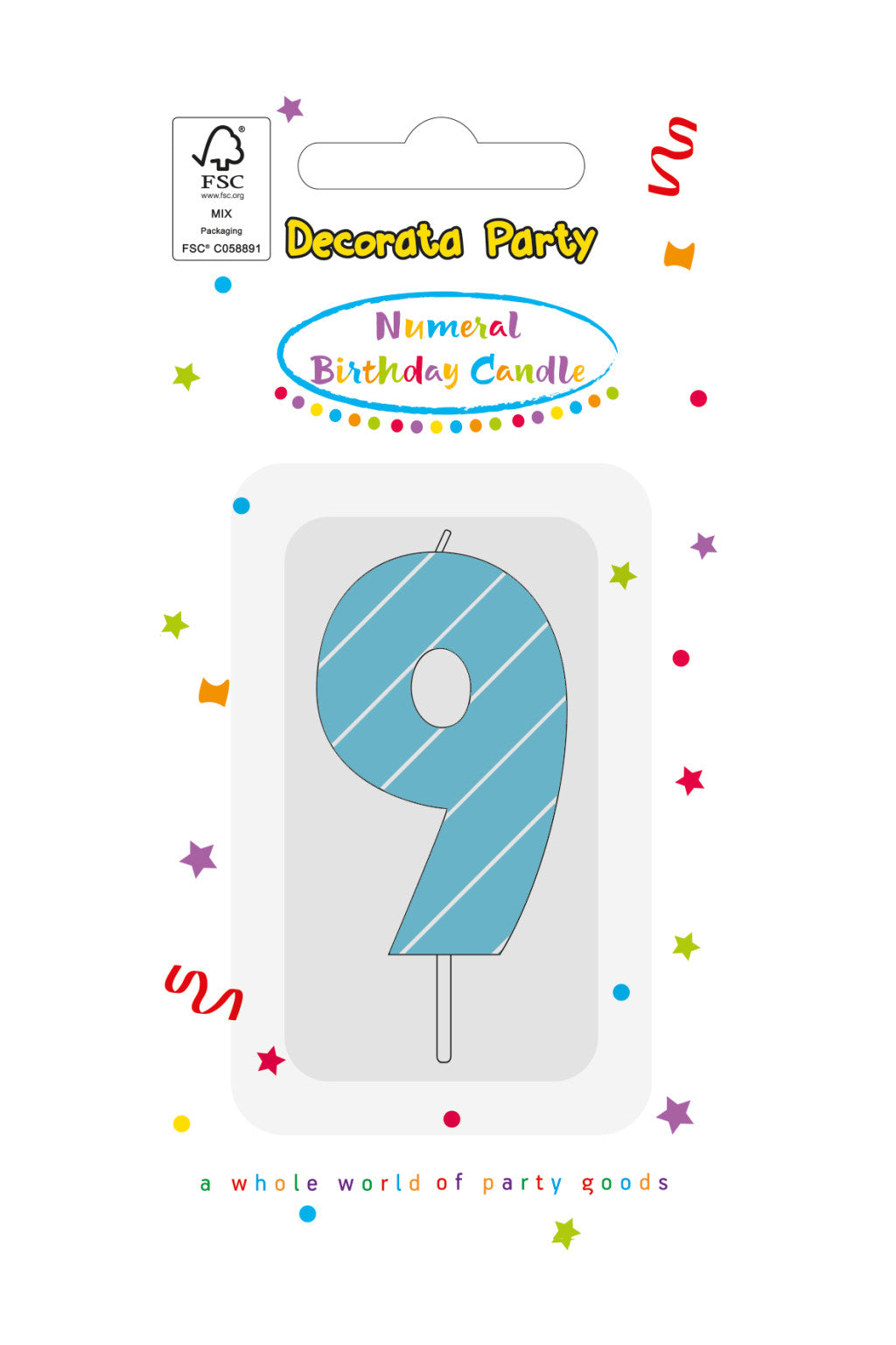 Színes Light Blue 9-es tortagyertya, számgyertya