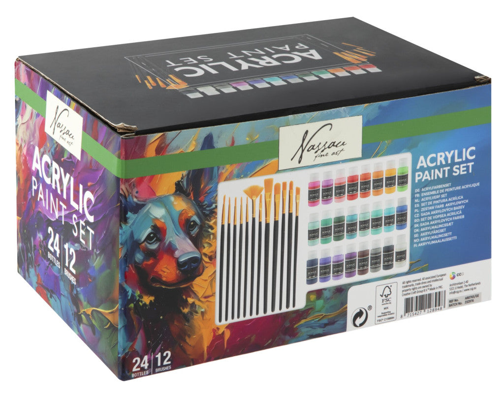 Színes akrilfestő készlet ecsettelMéret: 21x11x14 cmTartalma:- 24 db akril festék 59 ml- 12 db ecset Bővebben