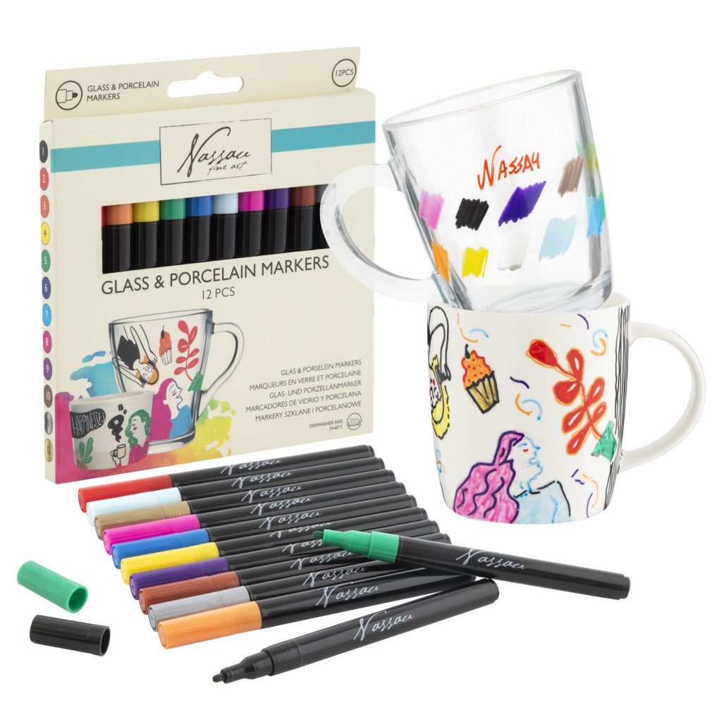 Színes Nassau üveg és porcelánfestő filctoll 12 db-os