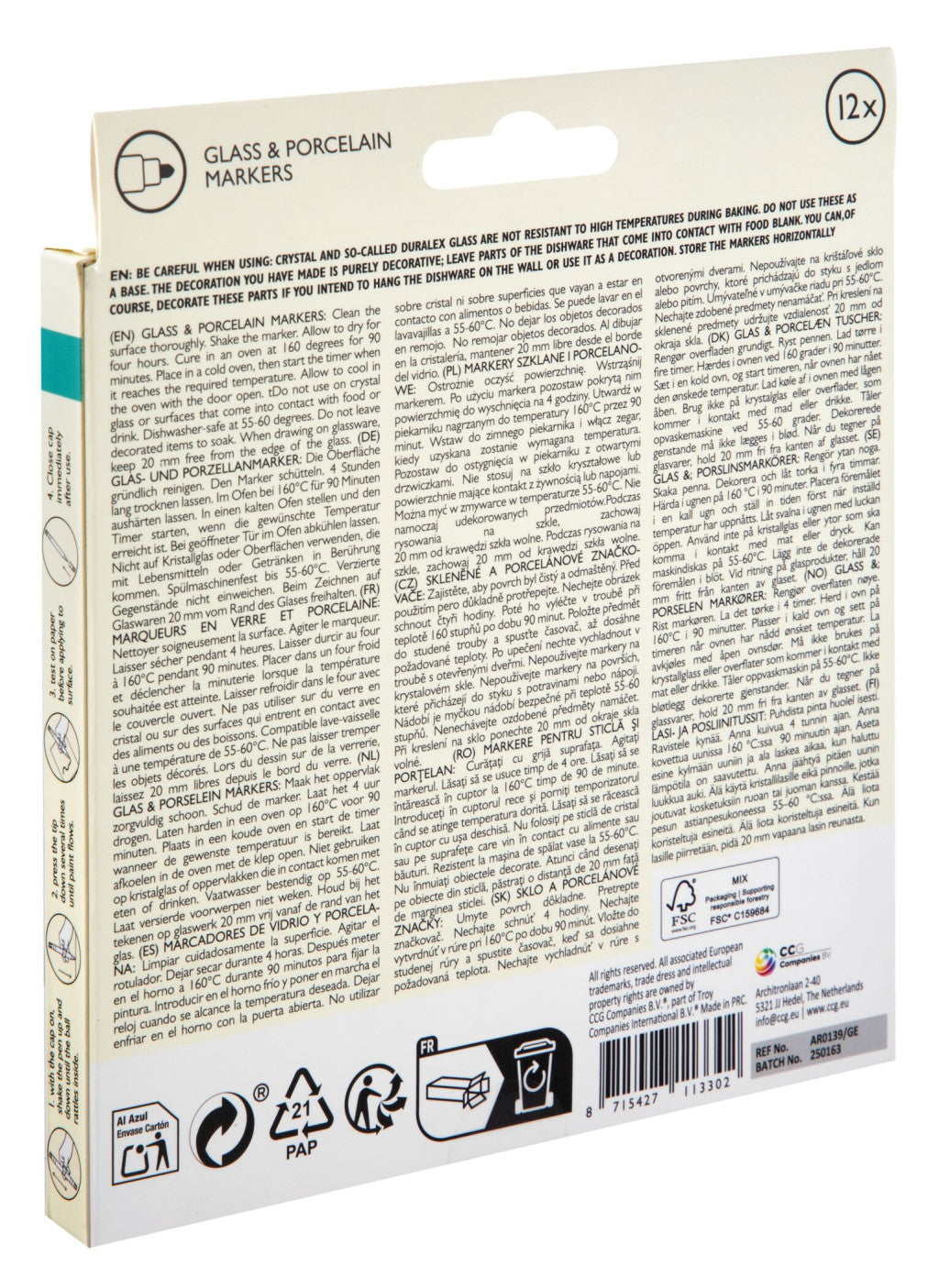 Színes üveg és porcelánfestő filctoll 12 db-osMéret: 15x13 cmAnyaga: műanyag12 darab/csomag Bővebben