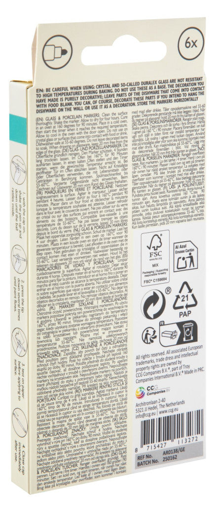 Színes üveg és porcelánfestő filctoll 6 db-osMéret: 15x7 cmAnyaga: műanyag6 darab/csomag Bővebben