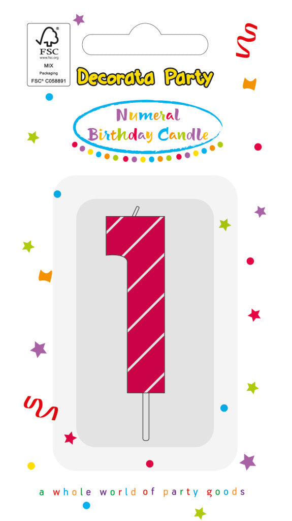 Színes Pink Pattern 1-es tortagyertya, számgyertya