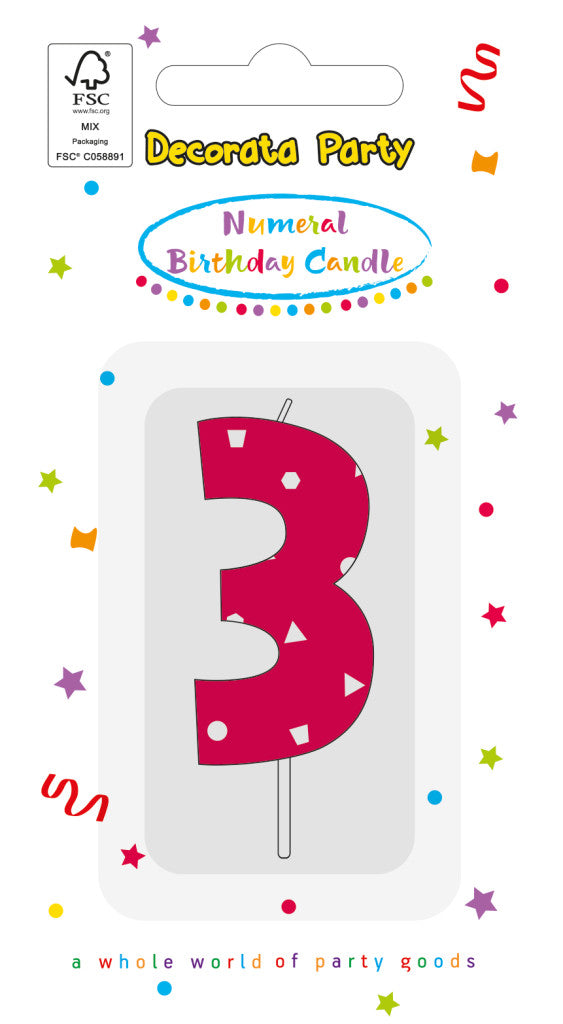 Színes Pink Pattern 3-as tortagyertya, számgyertya