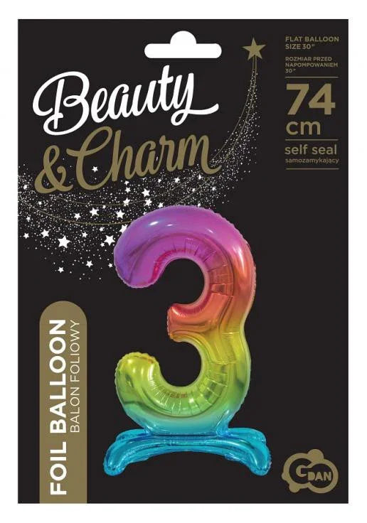Színes Rainbow 3-as szám fólia lufi talppal 74 cm