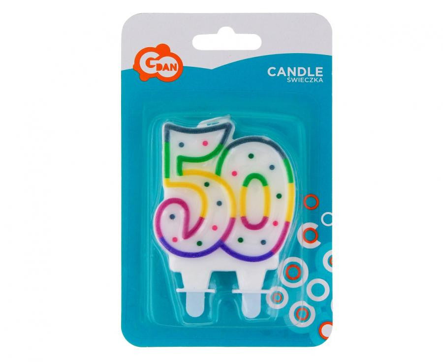 Színes Rainbow Dots tortagyertya, számgyertya 50-es
