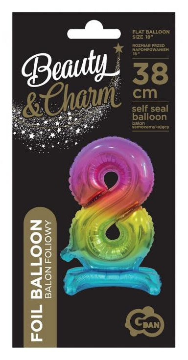 Színes Rainbow mini 8-as szám fólia lufi talppal 38 cm