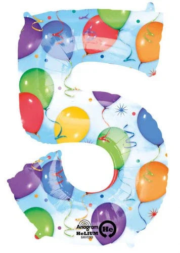 Színes Streamers óriás szám fólia lufi 5-ös, 58x83 cm