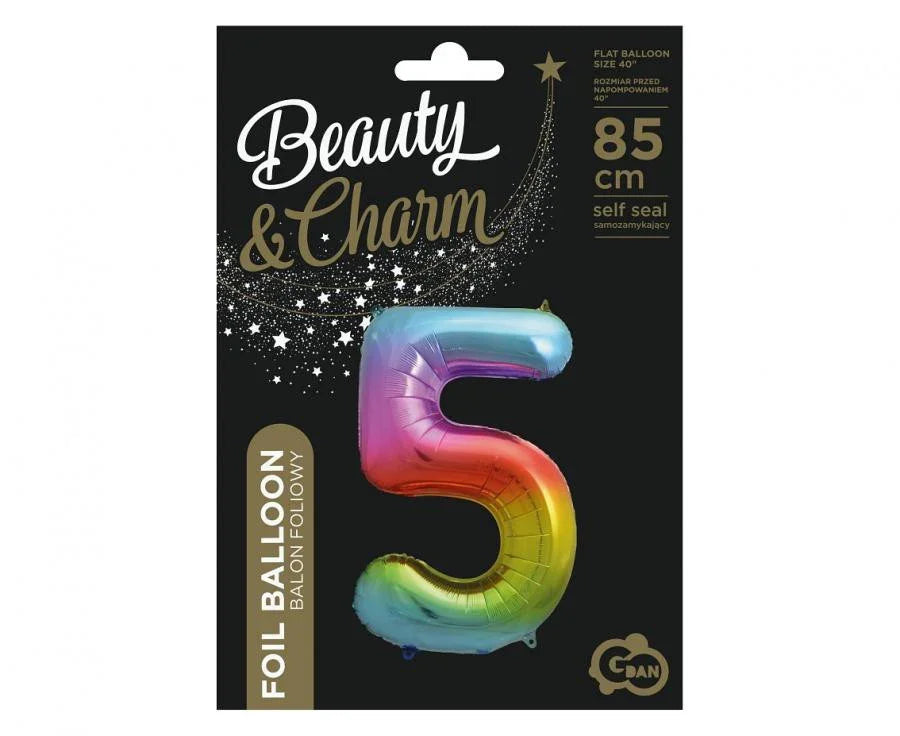 Szivárvány Rainbow 5-ös szám fólia lufi 85 cm