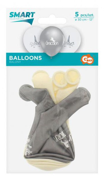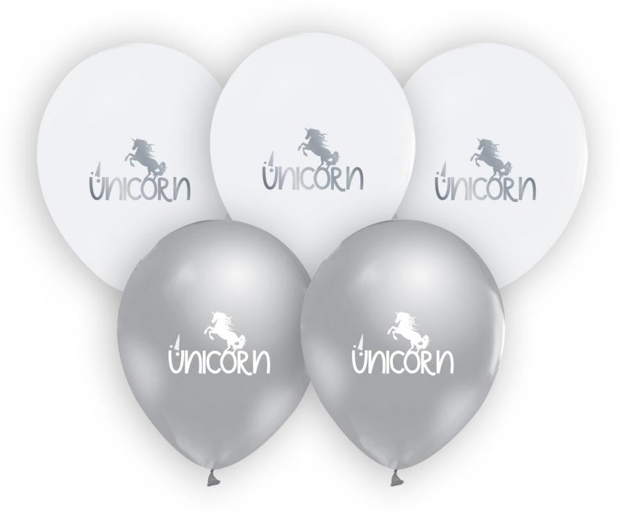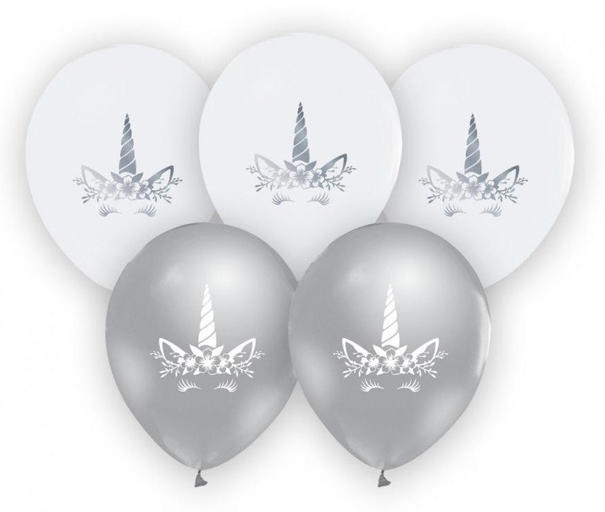 Unikornis Silver léggömb, lufi 5 db-os 12 inch (30cm)